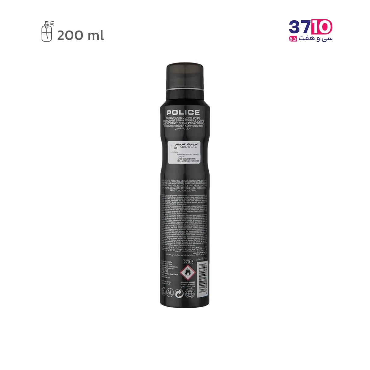 مشخصات فنی اسپری خوشبوکننده بدن مردانه پلیس مدل اکستریم Extreme حجم 200 میلی لیتر