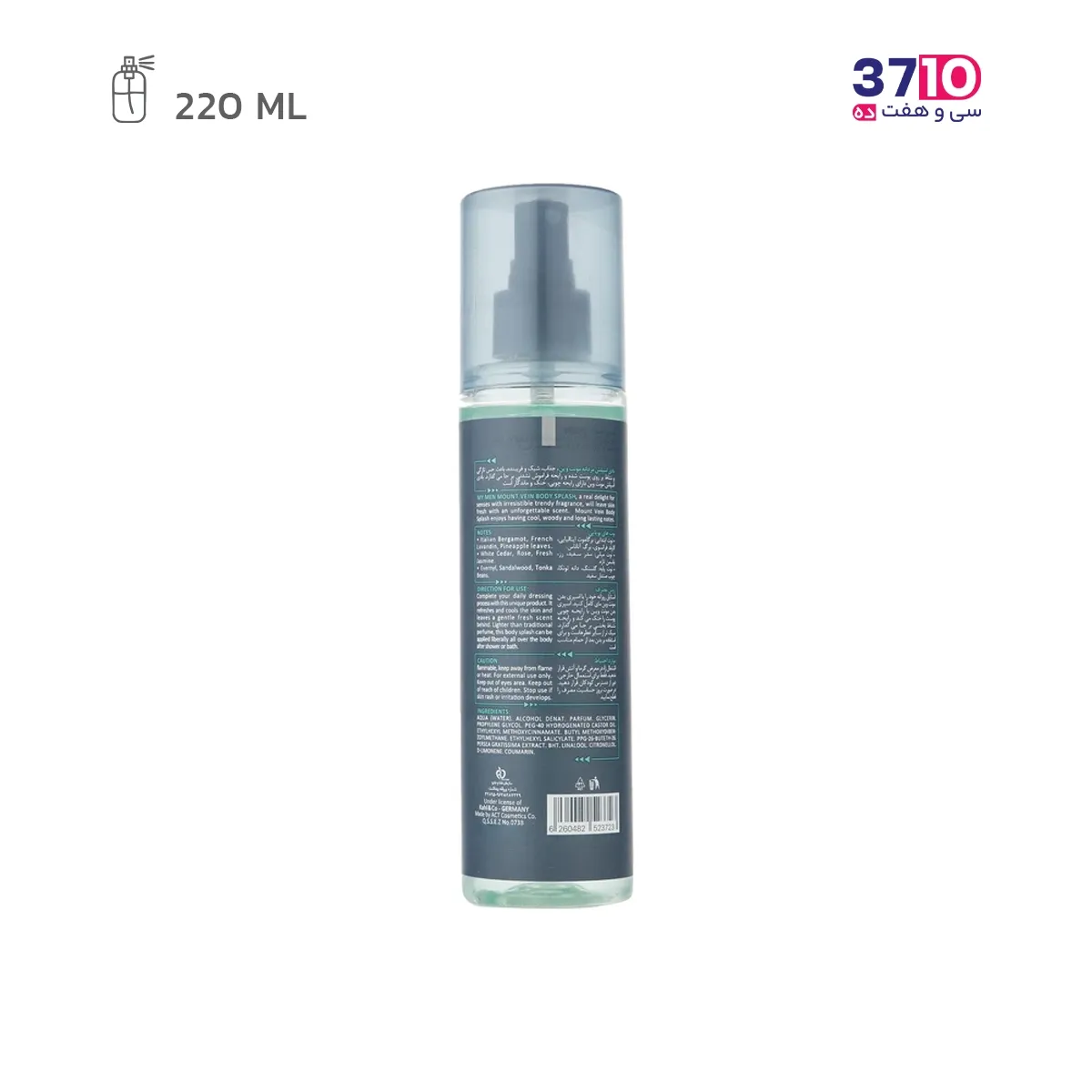 مشخصات فنی بادی اسپلش مردانه مای مدل Mount Vein حجم 220 میلی لیتر