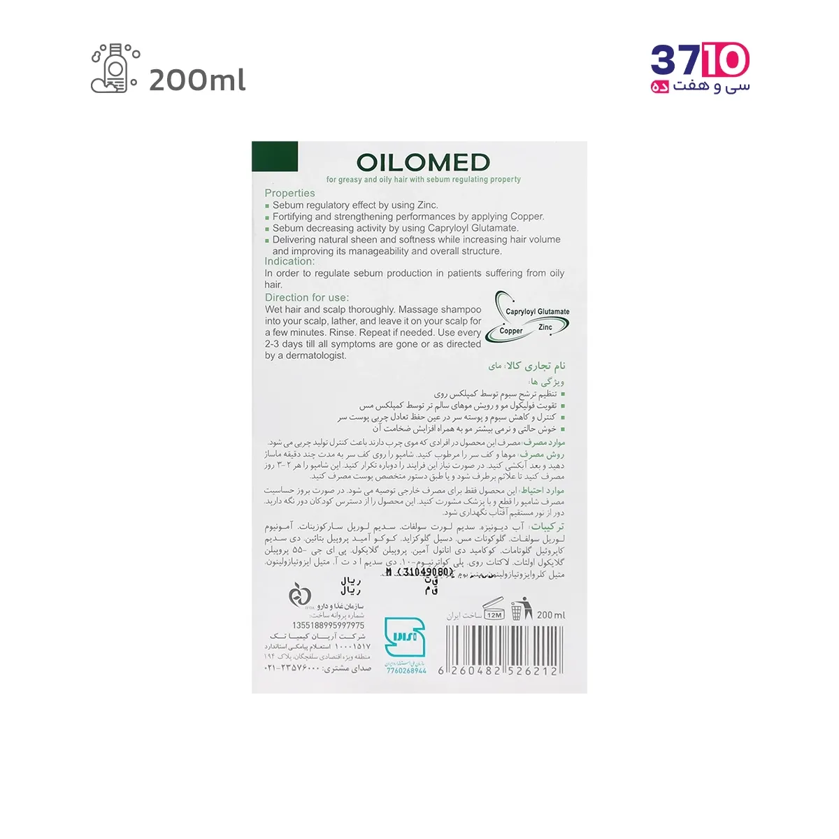 شامپوموی سر مای مدل اویلومد مناسب موهای چرب حجم 200 میلی لیتر