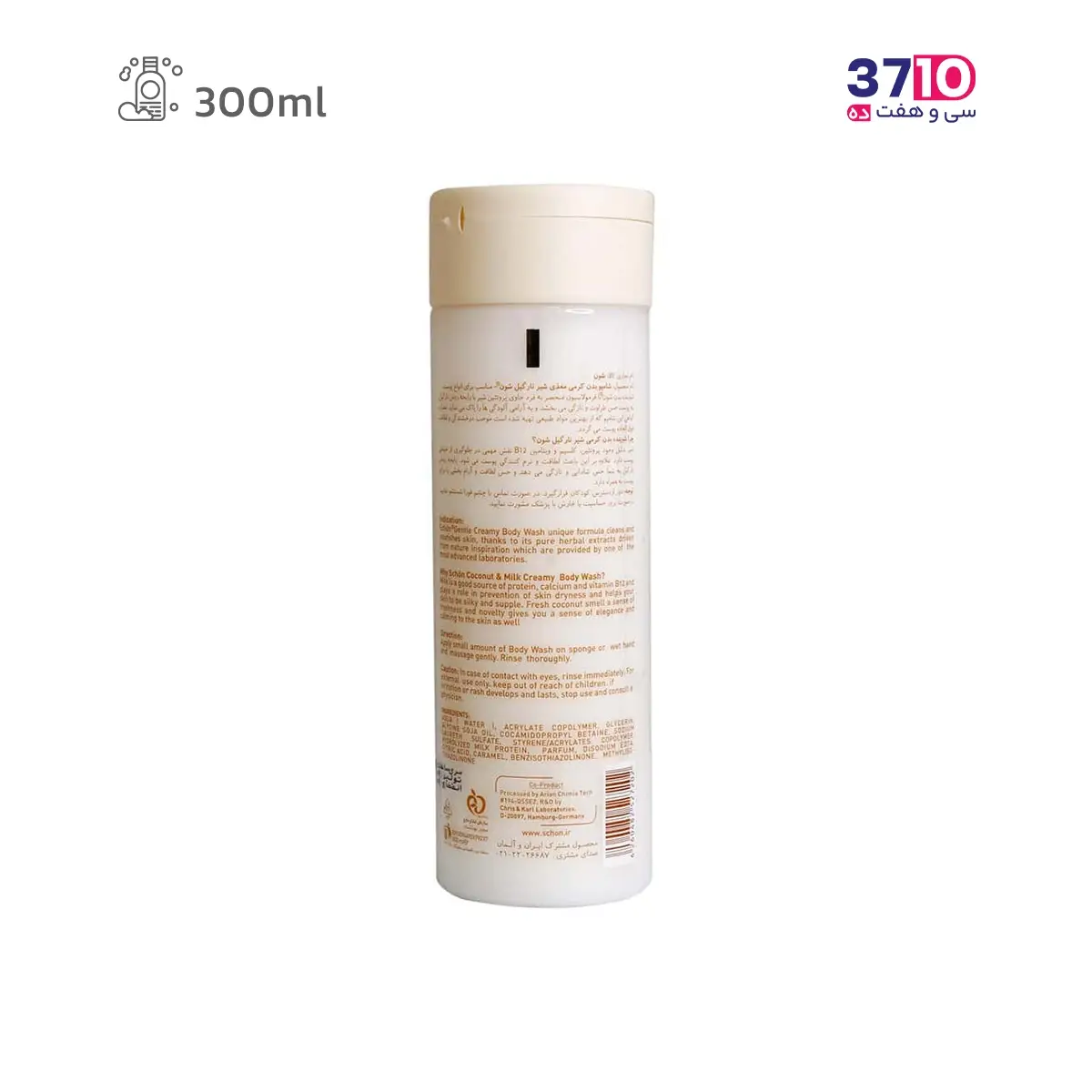 شامپو بدن کرمی شون مدل شیر و نارگیل حجم 300 میلی لیتر