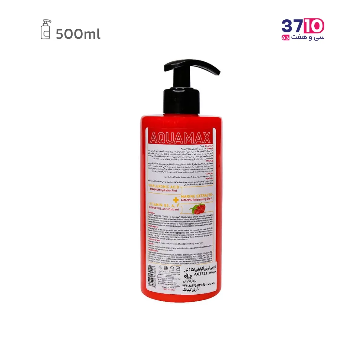کرم آبرسان پمپی شون مدل آکوامکس امگا ۳ حجم 500 میلی لیتر