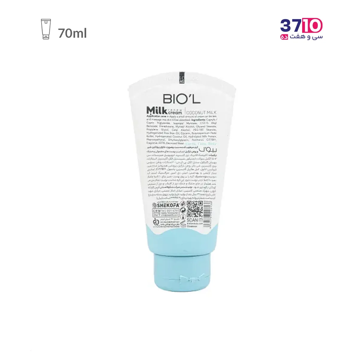 مشخصات فنی کرم تیوپی بیول حاوی عصاره شیر و نارگیل حجم 70 میلی لیتر