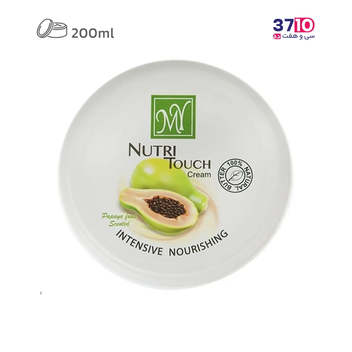 کرم میوه ای نوتری تاچ مای سرشار از ویتامین E و عصاره میوه استوایی پاپایا، فرمولاسیونی متناسب با انواع مختلف پوست داشته و با اثر نرمکنندگی قوی و ماندگار از بروز چین و چروک و پیری زودرس پوست جلوگیری میکند.