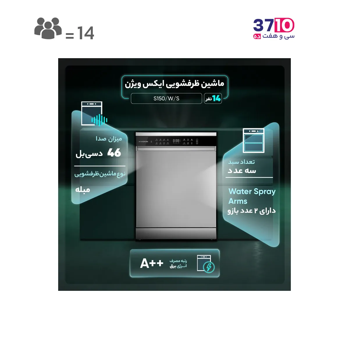 ماشین ظرفشویی ایکس ویژن مدل S150-S نقره ای