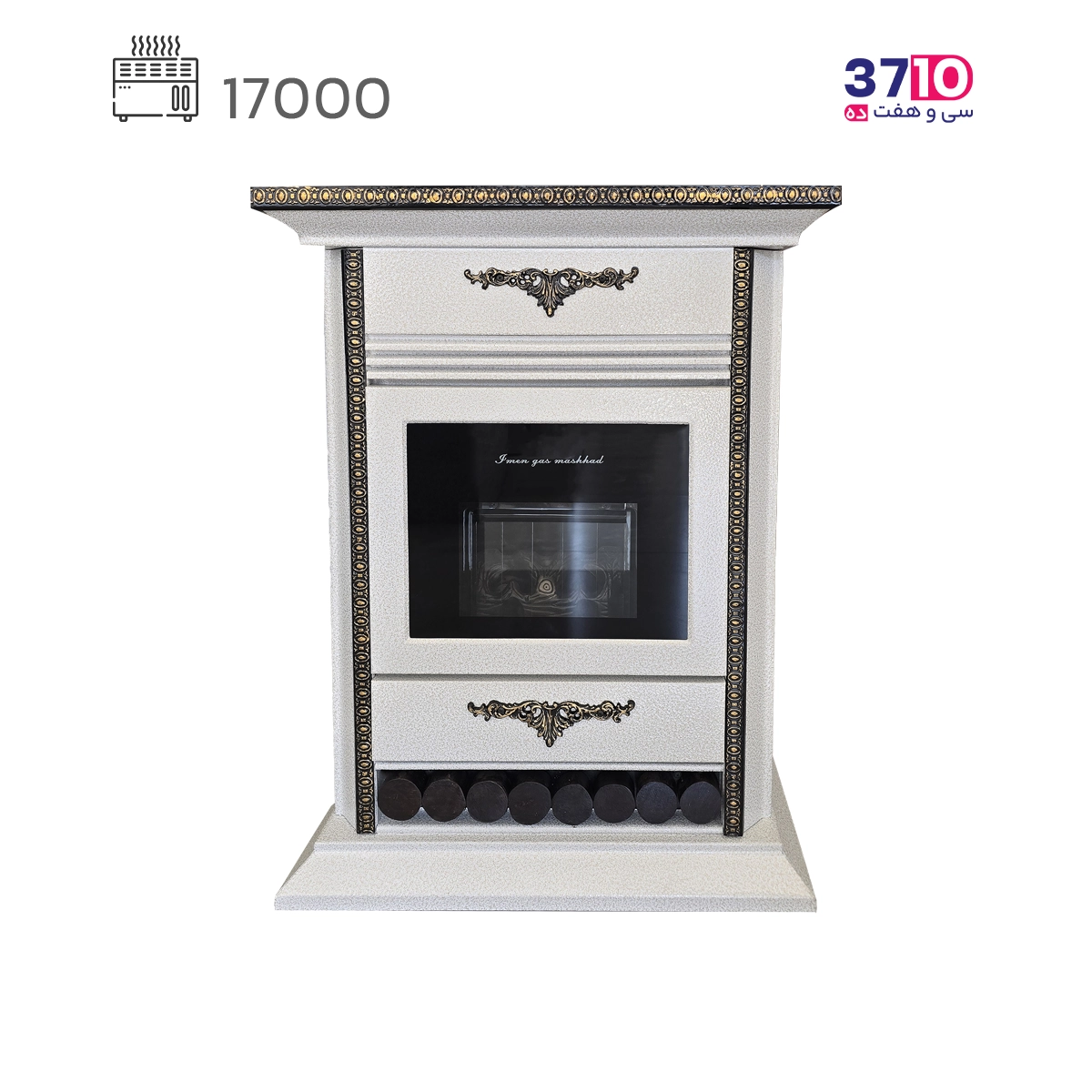 بخاری شومینه ایمن گاز مشهد 17000 چکشی سفید طلایی مدل شادلین کلاسیک B