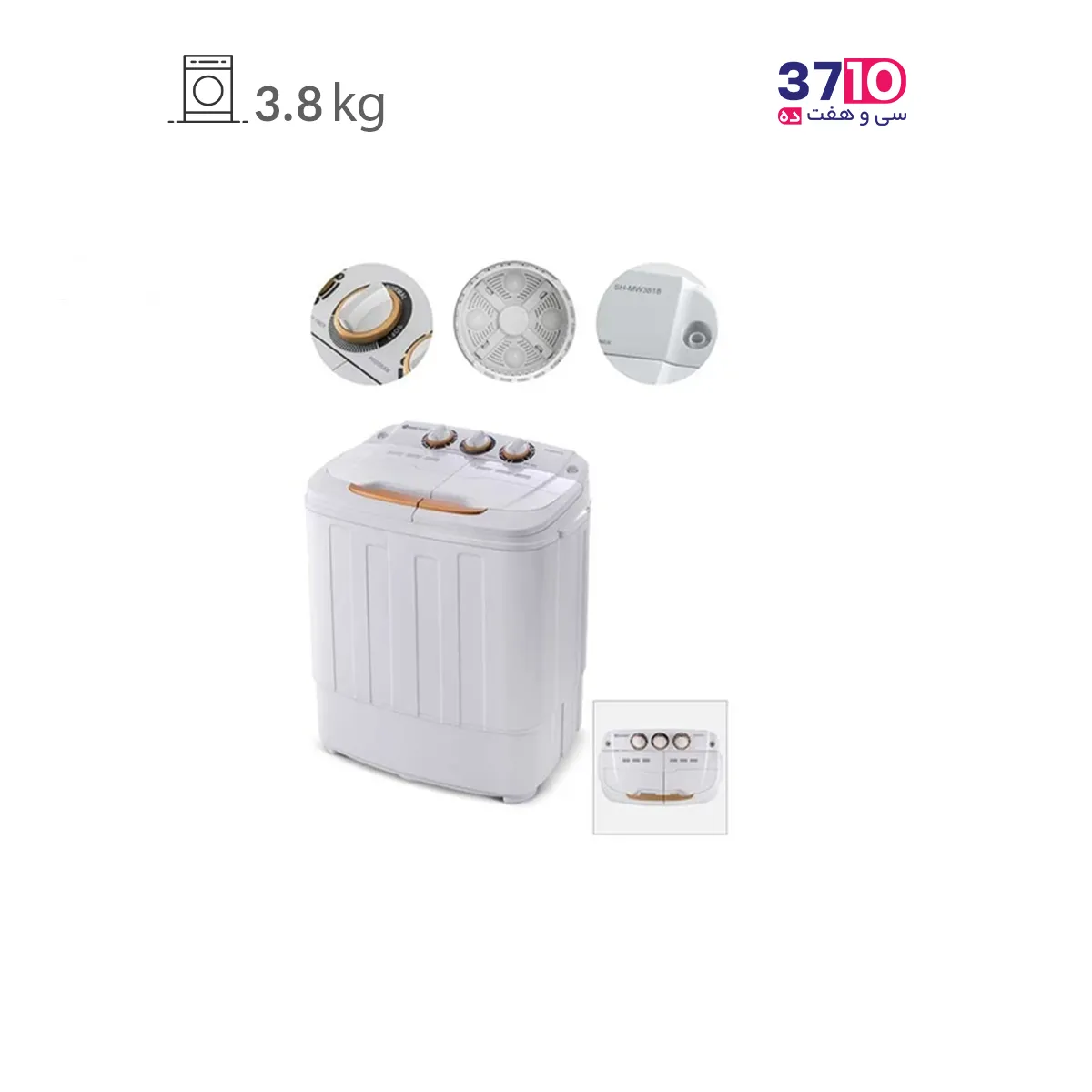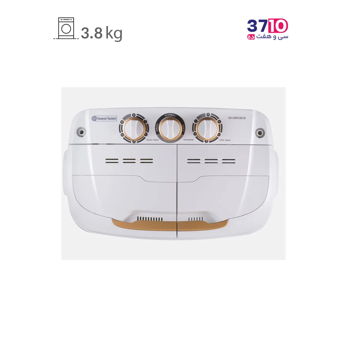ماشین لباسشویی دو قلو جنرال تکنیک مدل SH-MW 3818 سفید طلایی 3.8 کیلویی