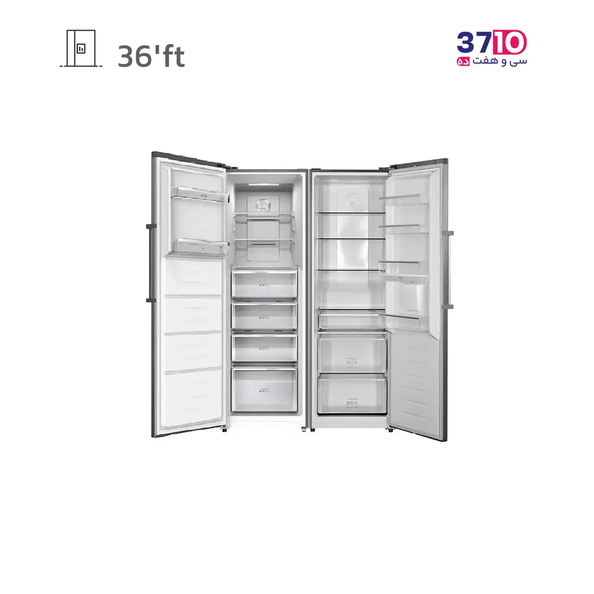 این یخچال فریزر دوقلو جیپلاس با ظرفیت کل ۶16 لیتر برای خانوادههای پرجمعیت انتخابی مناسب به شمار میرود. بخش یخچال ۳54 لیتر و فریزر 262 لیتر فضا دارند که با کشوها و طبقات شیشهای نشکن تقسیمبندی شدهاند و امکان نظمدهی بهتر را فراهم میکنند. وجود کشوی مخصوص با قابلیت حفظ رطوبت، ماندگاری میوه و سبزیجات را بیشتر میکند و مانع از خشکشدن زودهنگام آنها میشود. کمپرسور اینورتر با مصرف انرژی بهینه و صدای ۴۲ دسیبل، تجربهای کمصدا و کمهزینه را ارائه میدهد. سیستم گردش چندگانه هوا هوای سرد را بهطور یکنواخت در تمام بخشها پخش میکند و این یعنی دیگر با مشکل یخزدگی یا هوای گرم در گوشههای مختلف مواجه نخواهید شد. قابلیت سرمایش سریع و انجماد سریع برای زمانهایی کاربرد دارد که مواد تازه خریداری کردهاید و نیاز دارید خیلی سریع دمای آنها کاهش یابد. وجود آبسردکن اتوماتیک ، دسترسی به آب خنک را راحت میکند، هرچند نبود یخساز اتوماتیک باعث شده فضای بیشتری برای نگهداری مواد غذایی فراهم شود. کنترل جداگانه دما برای یخچال و فریزر هم به شما امکان میدهد هر بخش را بسته به نیازتان تنظیم کنید. سیستم بدون برفک نوفراست، کار طاقتفرسای یخزدایی دستی را حذف کرده و روشنایی LED داخلی دید خوبی در شب ایجاد میکند. این مجموعه امکانات باعث میشود محصول بیشتر بر راحتی و بهبود تجربه روزانه تمرکز داشته باشد و در عین حال نگهداری از مواد غذایی را در شرایط استاندارد تضمین کند.