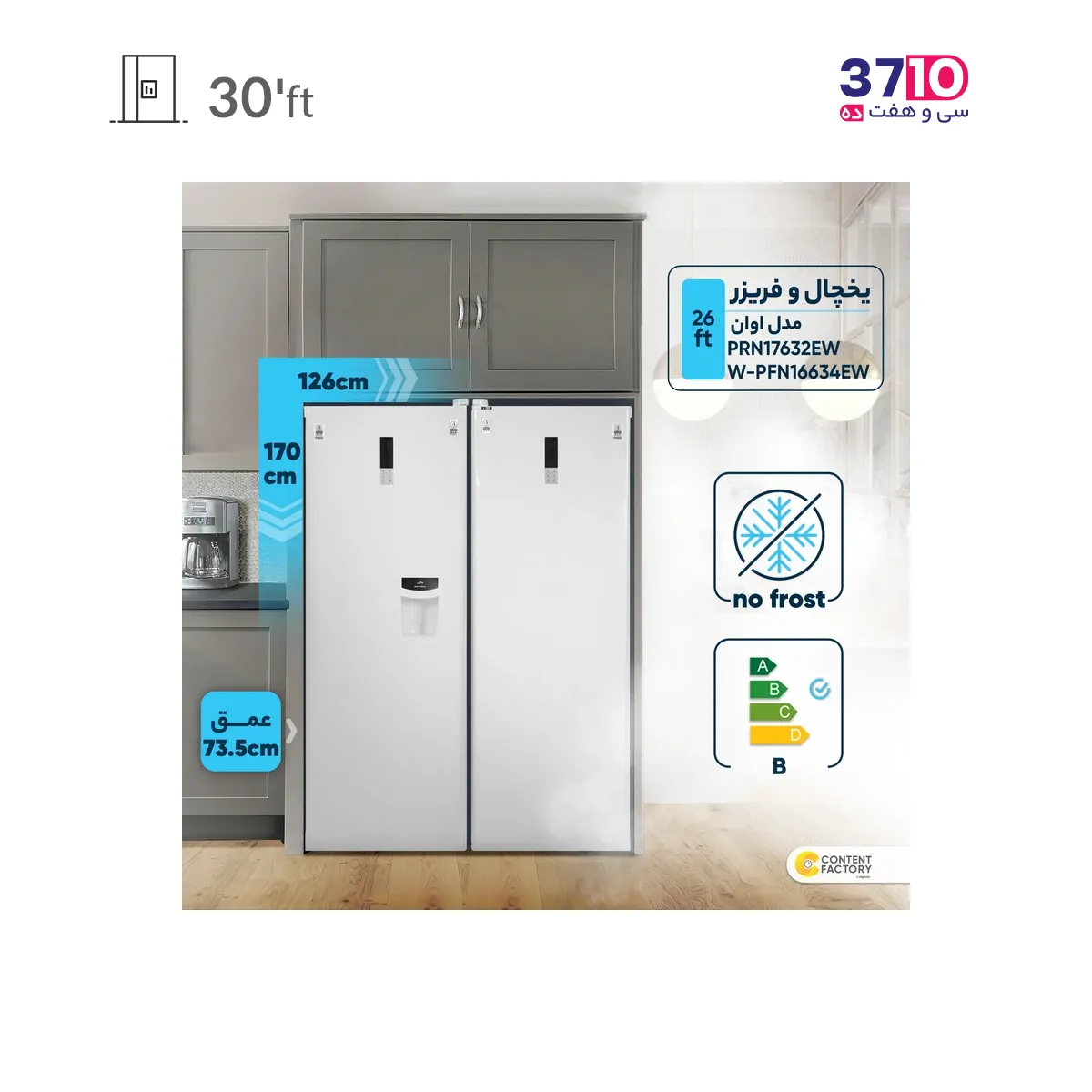 بله، این محصول با ظرفیت ۳۰ فوت، فضای کافی برای ذخیرهسازی مواد غذایی حجیم یا نیازهای خانوادههای پرجمعیت را فراهم میکند.
