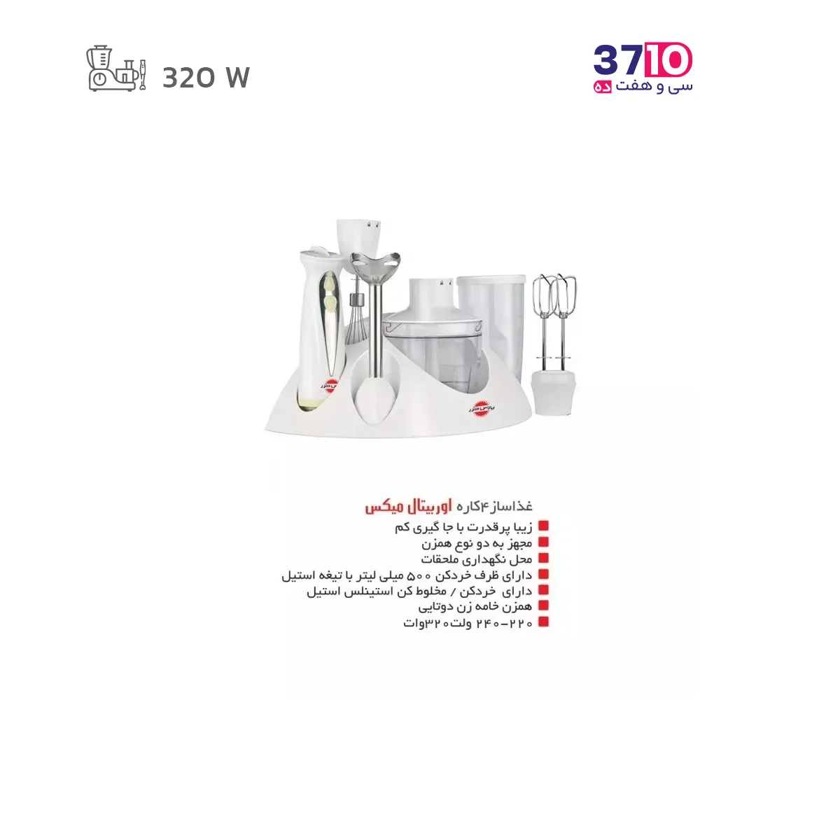 - دارای: خرد کن / همزن خامه / گوشت گوب