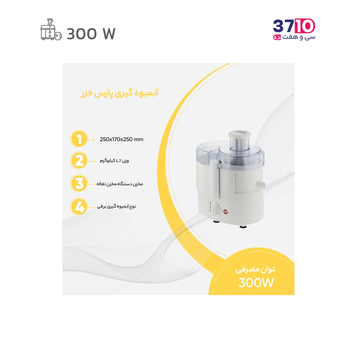 مشخصات فنی آبمیوه گیری پارس خزر مدل مانگو