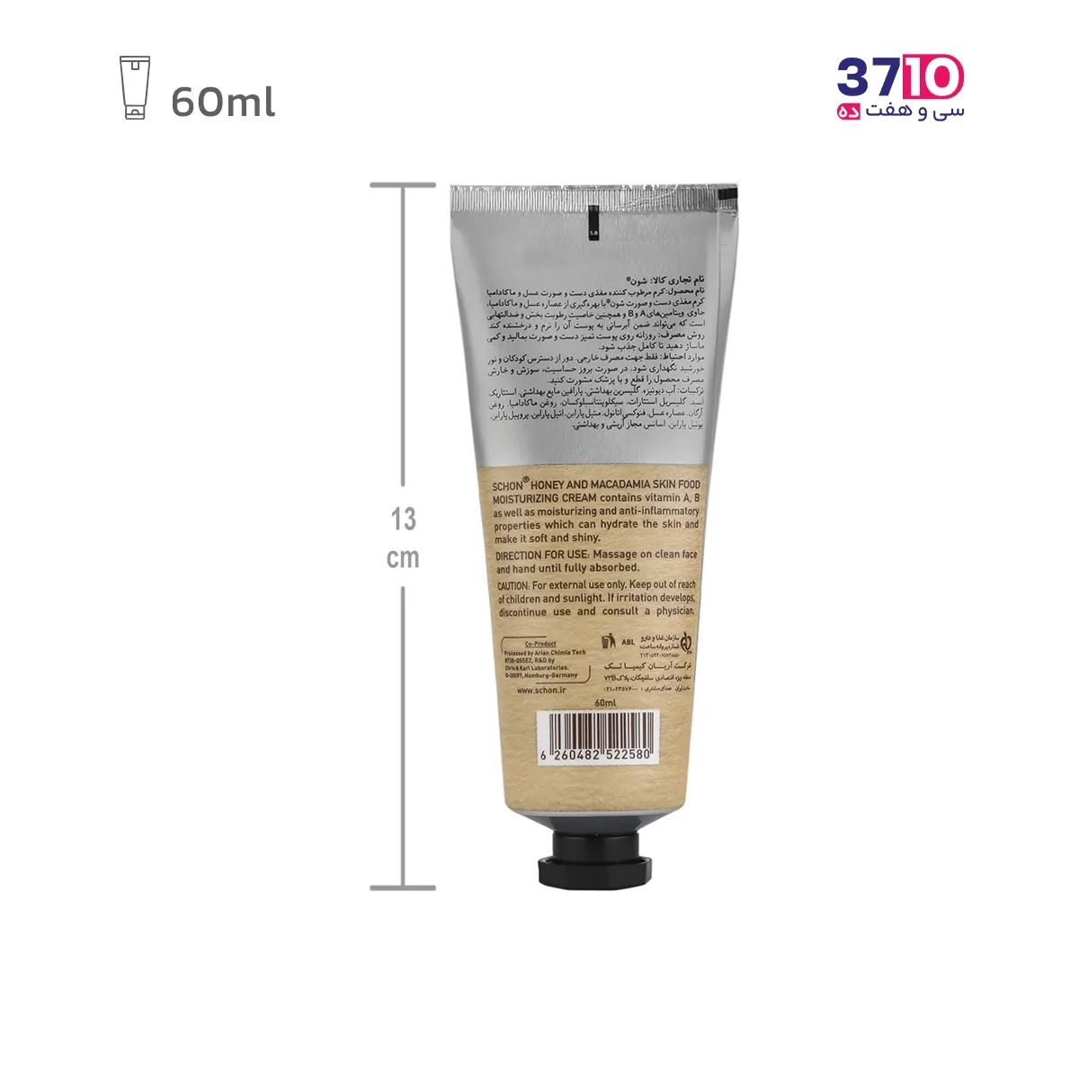 کرم مرطوب‌کننده مغذی تیوپی شون مدل عسل و ماکادمیا حجم 60 میلی‌لیتر